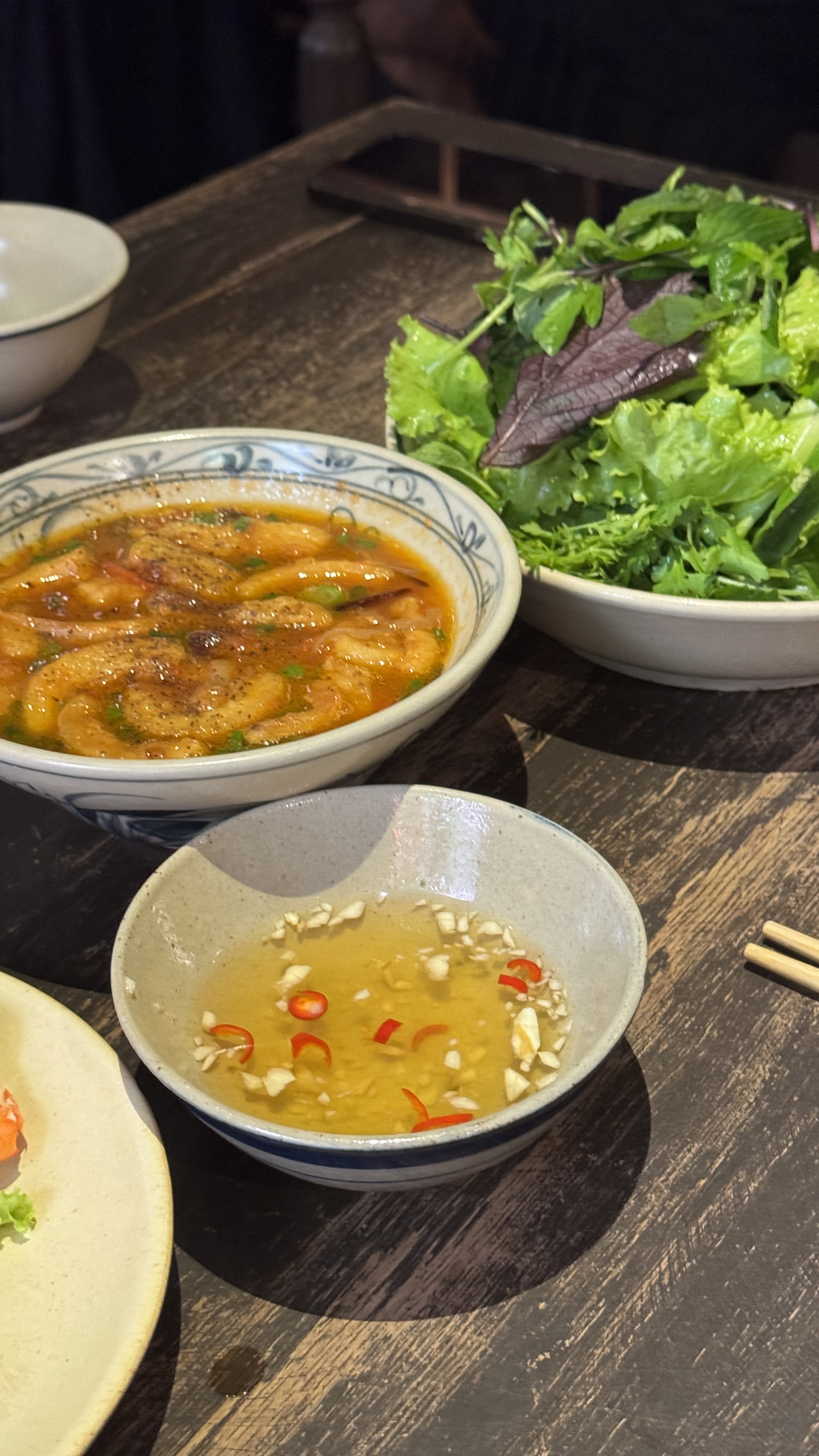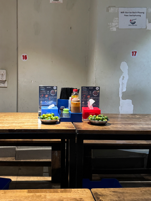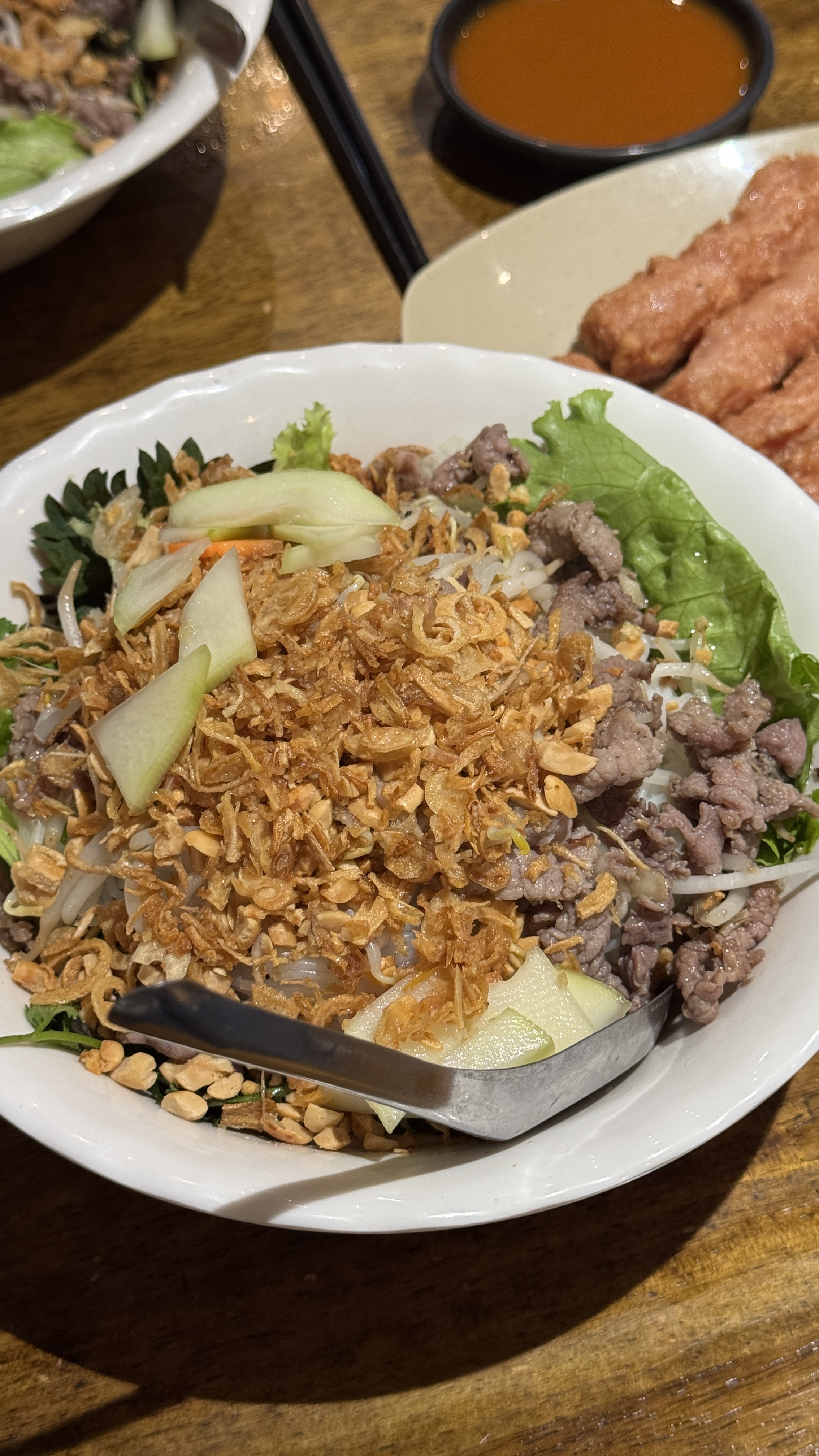 쉽게 설명하자면 비빔 쌀국수다. 갖은 야채와 후레이크, 고기, 견과류를 면 위에 올리고 새콤한 소스에 비벼먹는 쌀국수. 워낙 유명한 곳인데 숙소 앞에 있길래 마지막 날 방문했다.